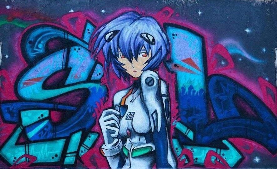 ![Стрит арт в стиле аниме]()