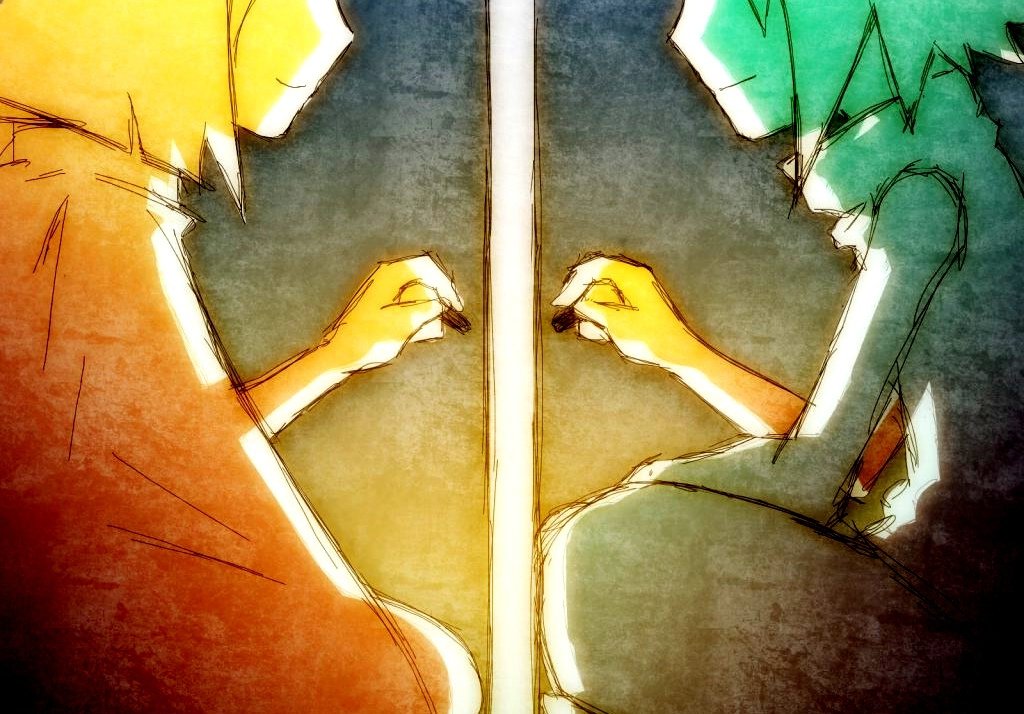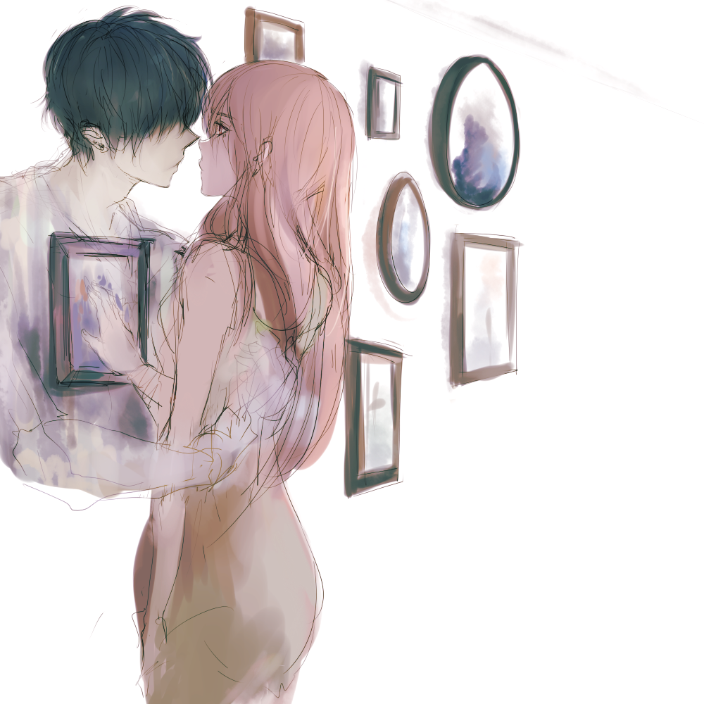 ![Аниме парень и девушка за стеной]()