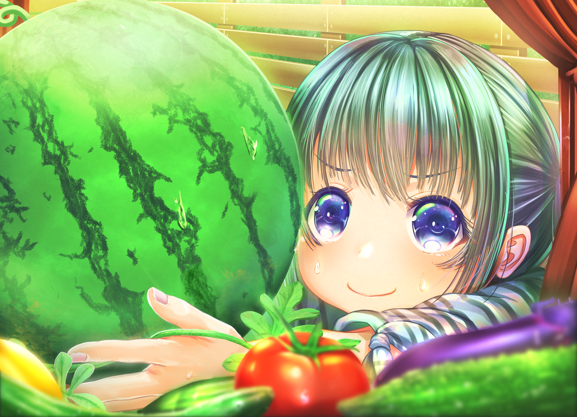 ![Аниме девушка с арбузом]()
