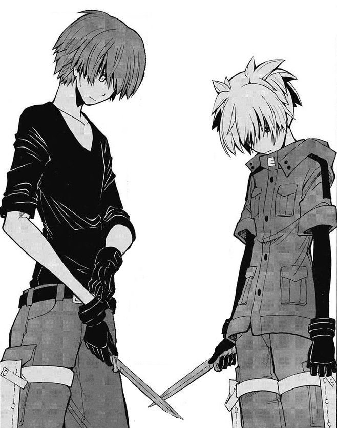 ![Карма Акабане и Нагиса Шиота чб]()