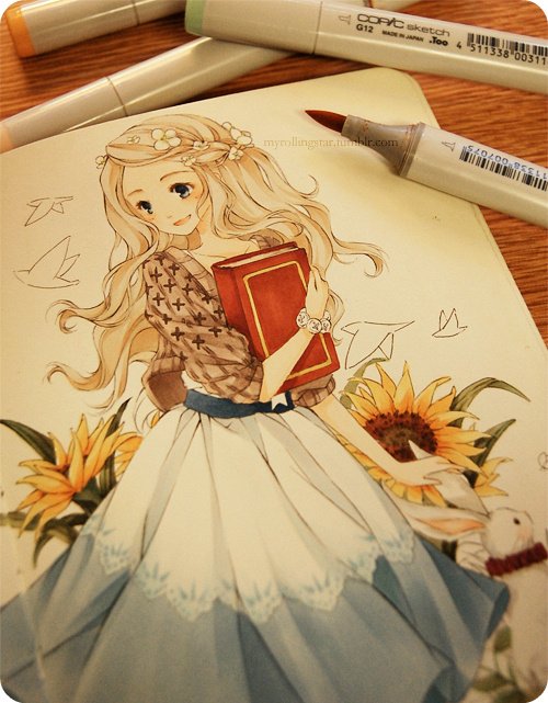 ![Милые девочки в скетчбук]()