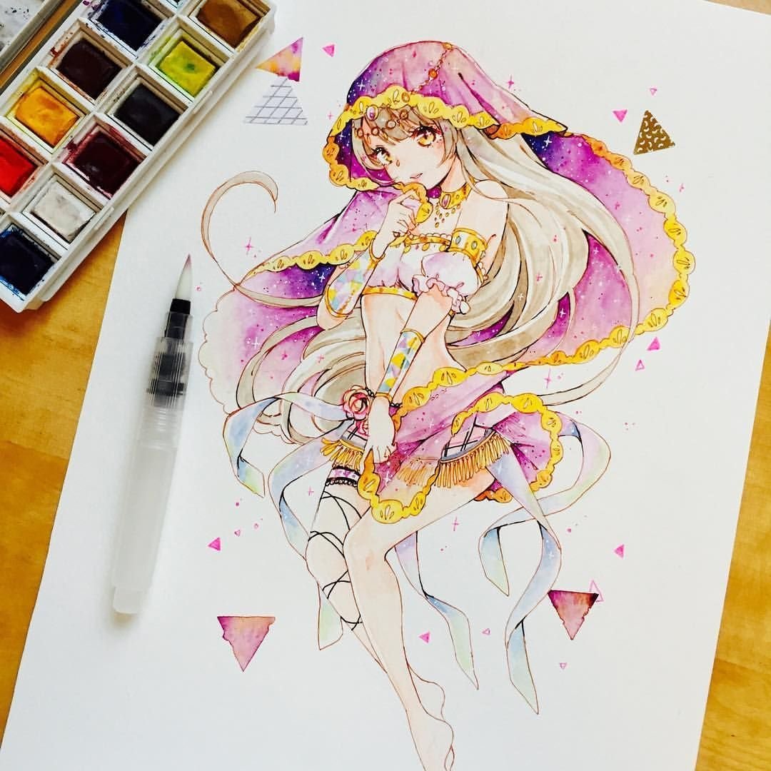![Аниме акварельными карандашами]()