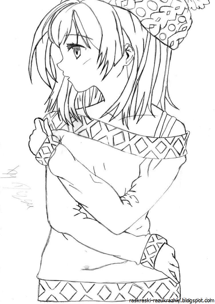 Аниме для разукрашивания девушка