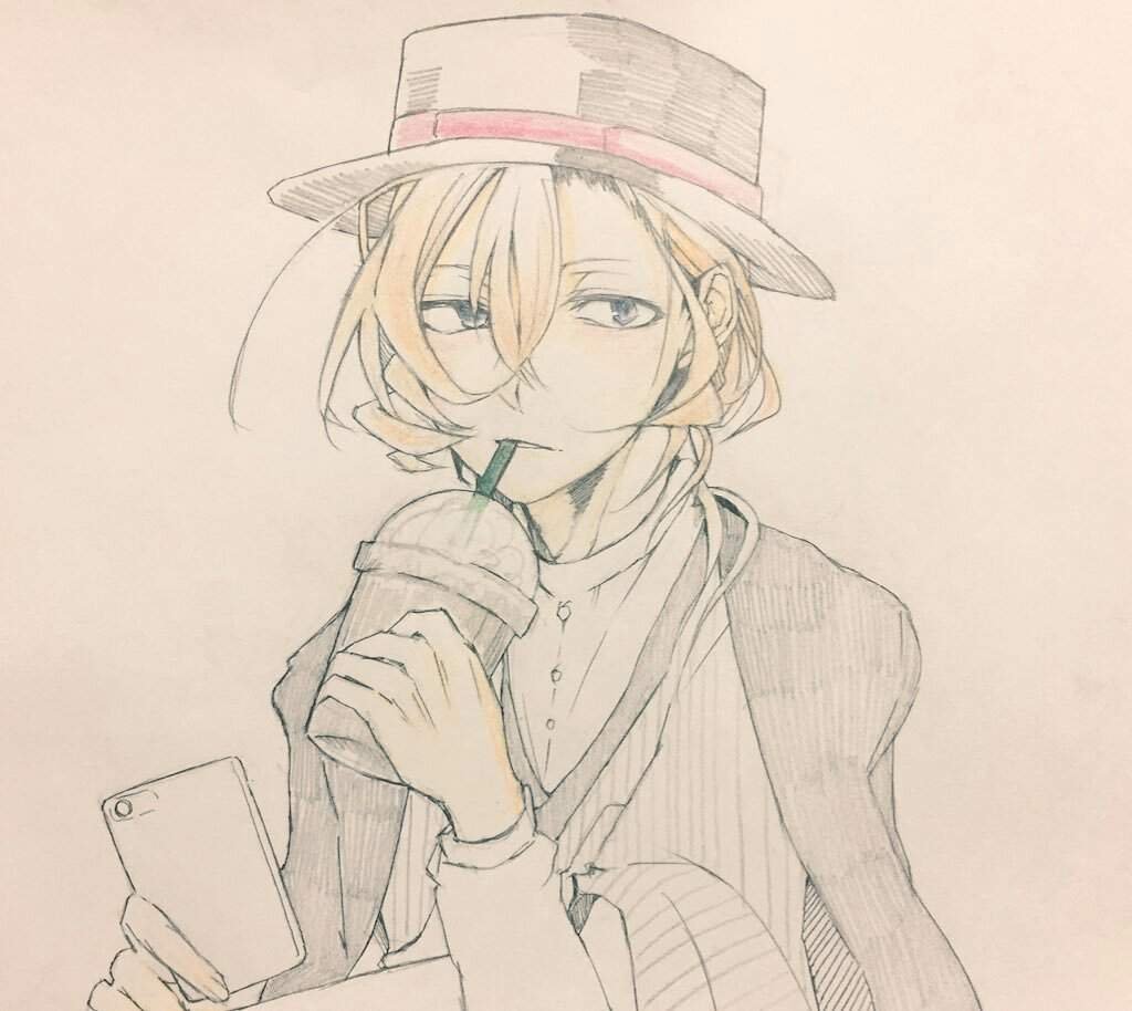 ![Великий из бродячих псов Чуя Накахара карандашом]()