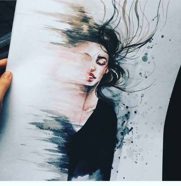 ![Идеи для рисунка акварелью мрачные]()