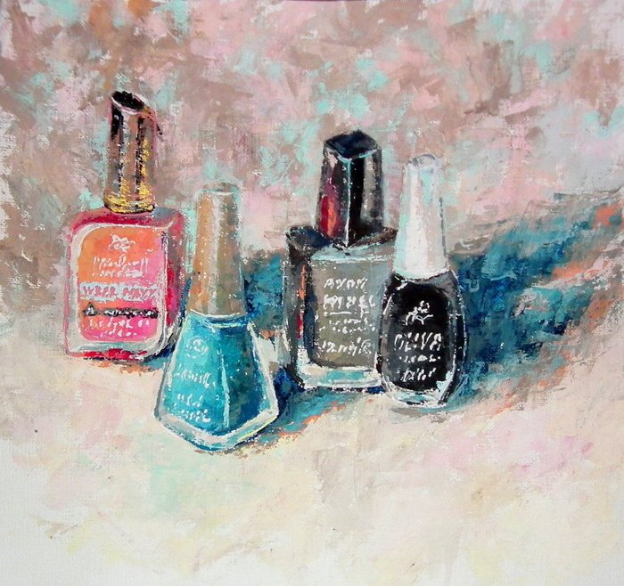 ![Рисунки девушек в виде лаков для ногтей]()