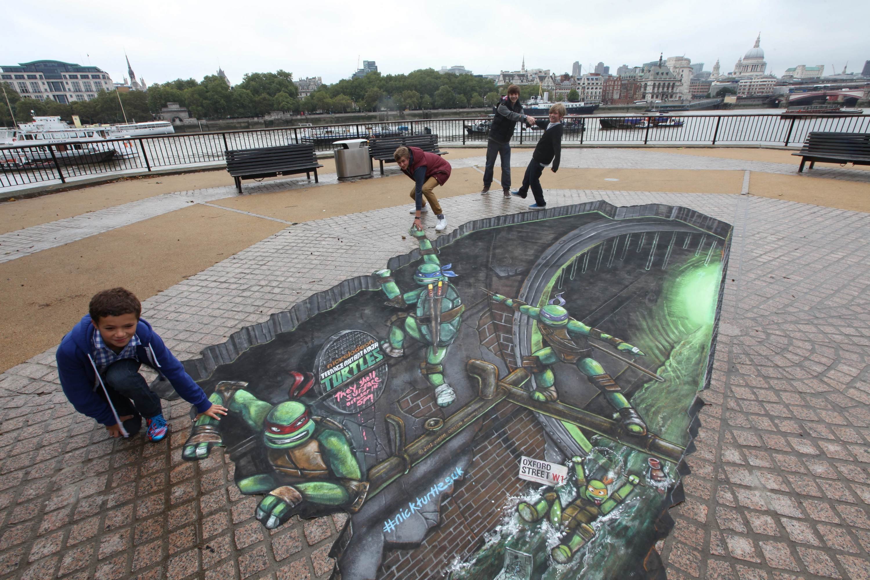 Джулиан Бивер.трехмерные рисунки на асфальте