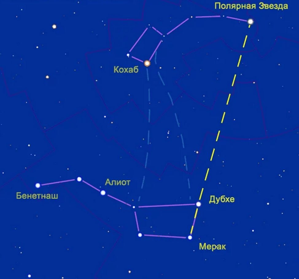 ![Большая и малая Медведица Созвездие на небе и Полярная звезда]()