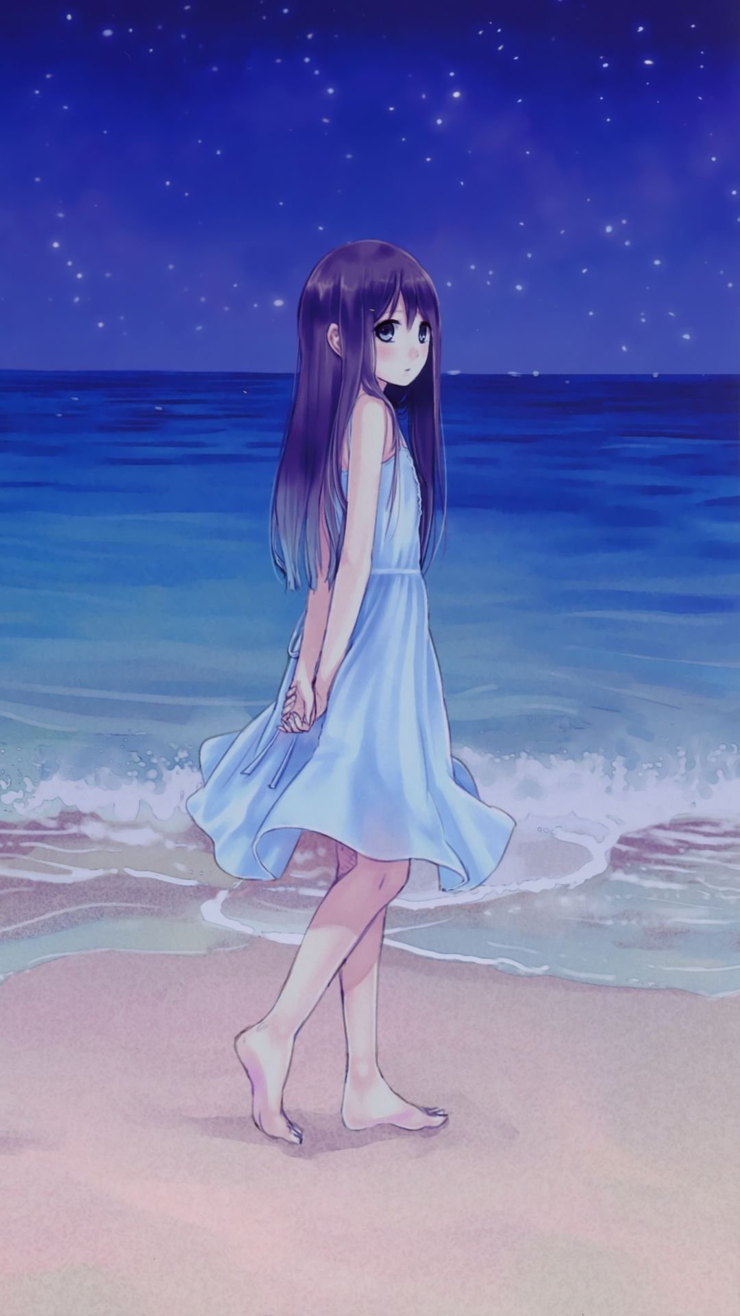 Аниме девушка в синем платье