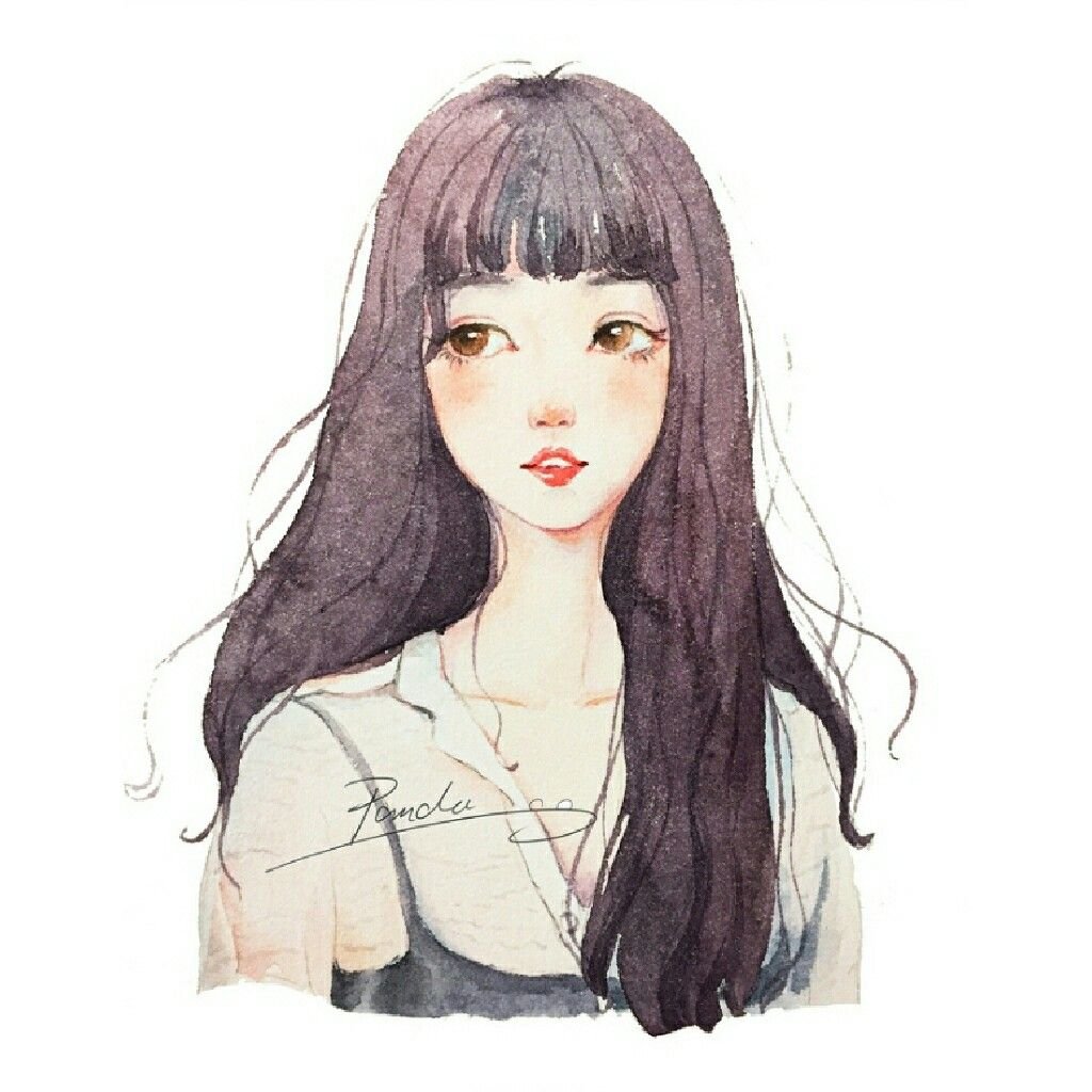 ![Нарисованные девушки с челкой]()