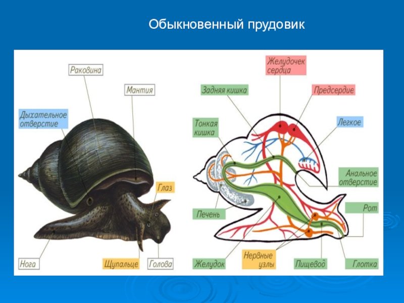![Внешнее и внутреннее строение прудовика обыкновенного]()