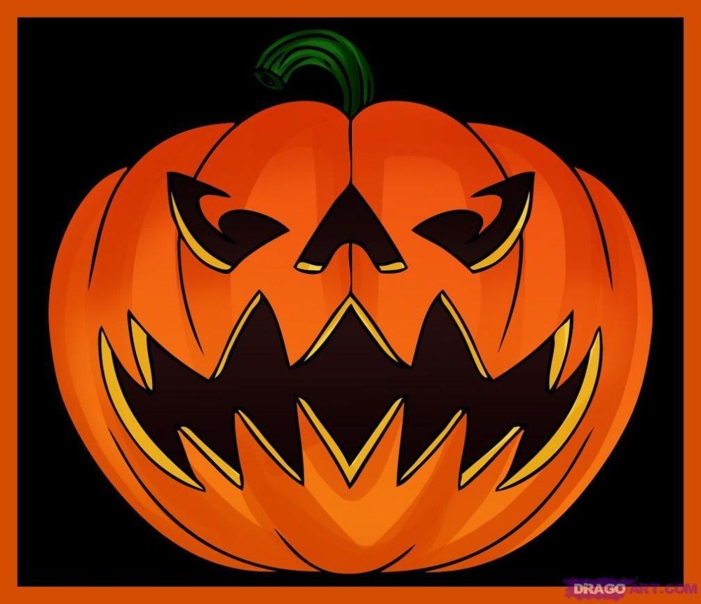 ![Рисунок тыквы на Хэллоуин для срисовки]()