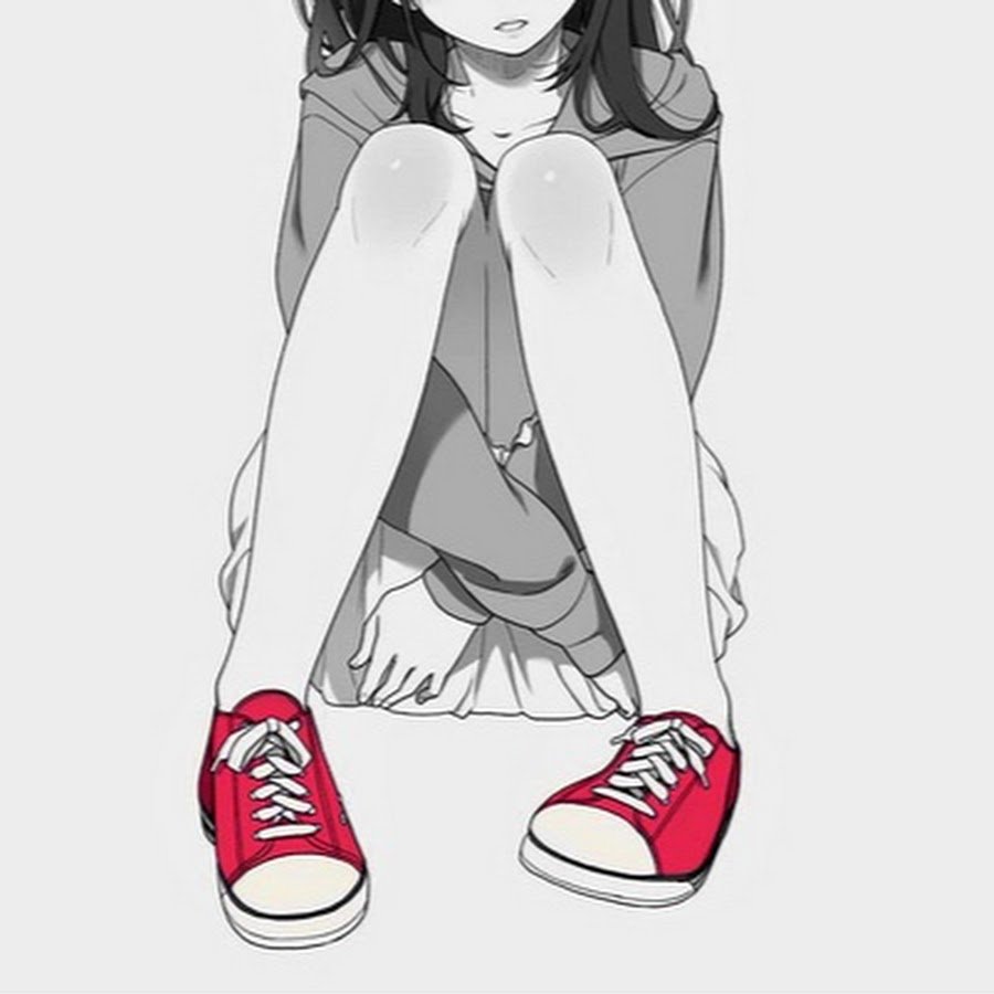 ![Аниме девушка в кедах]()