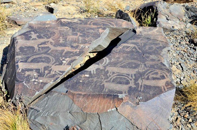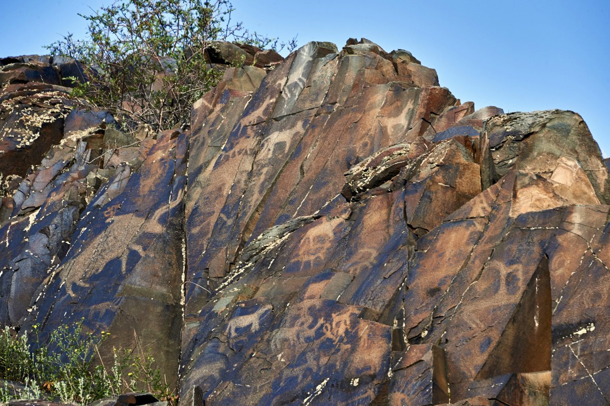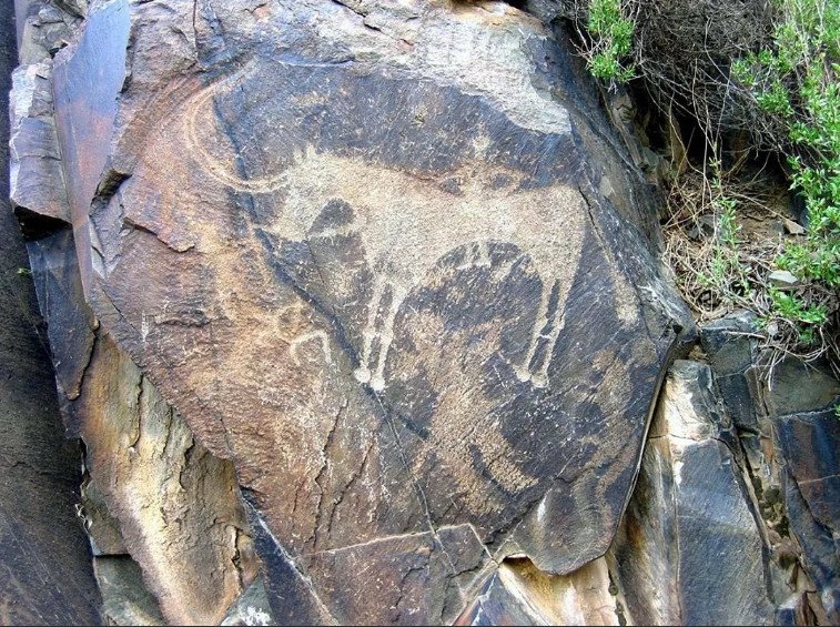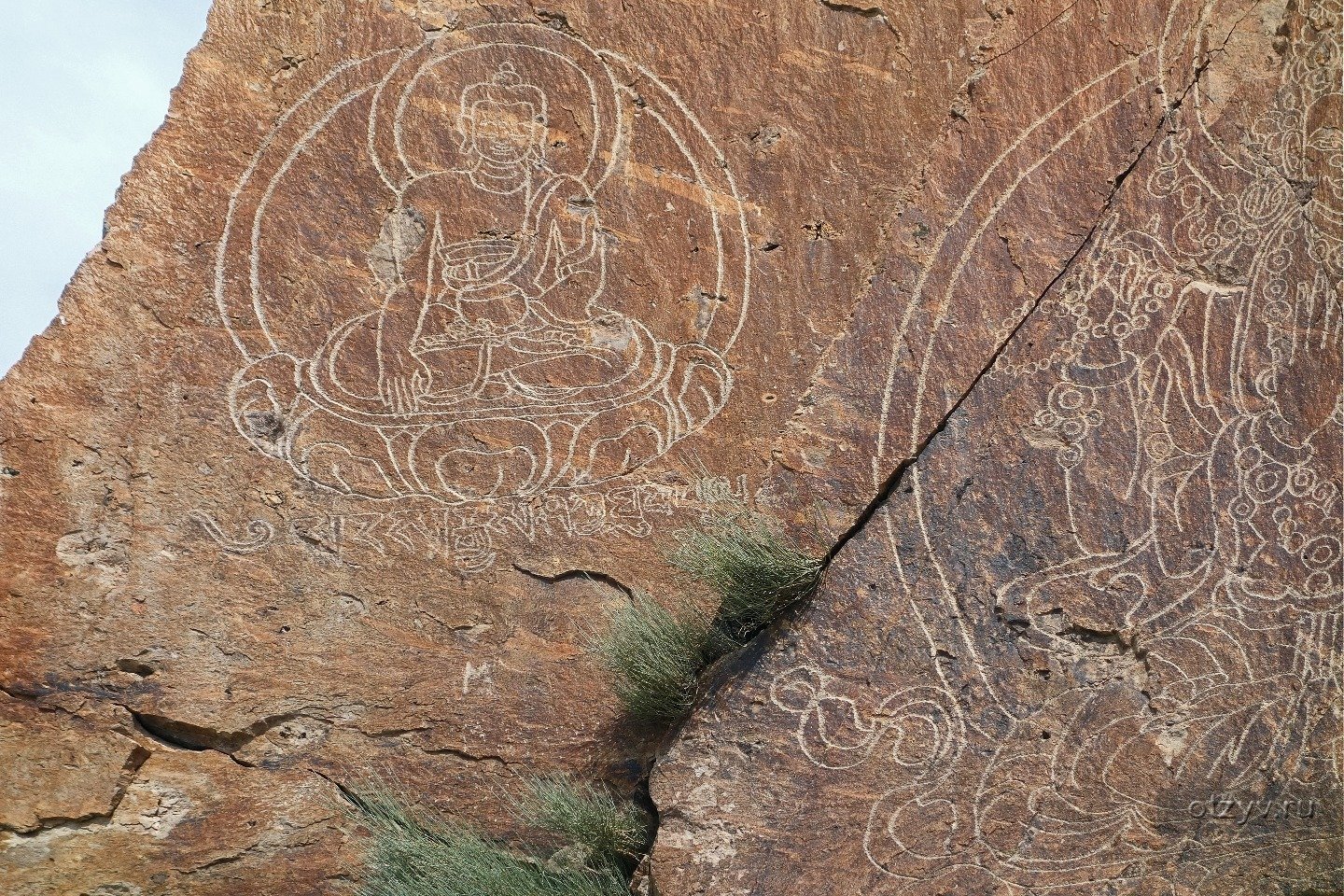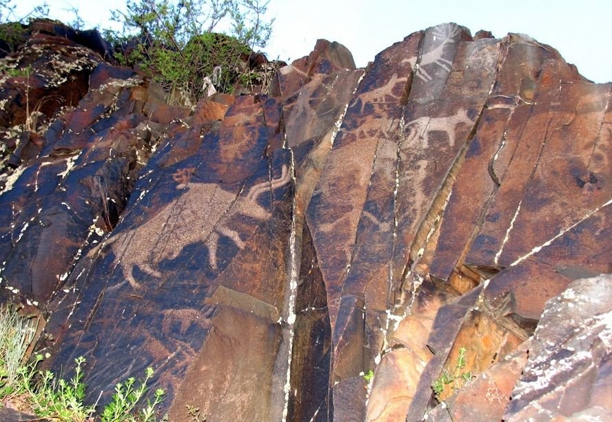 ![Петроглифы Тамгалы-тас в Казахстане]()