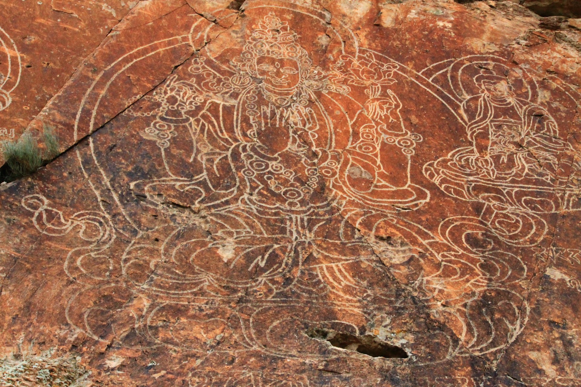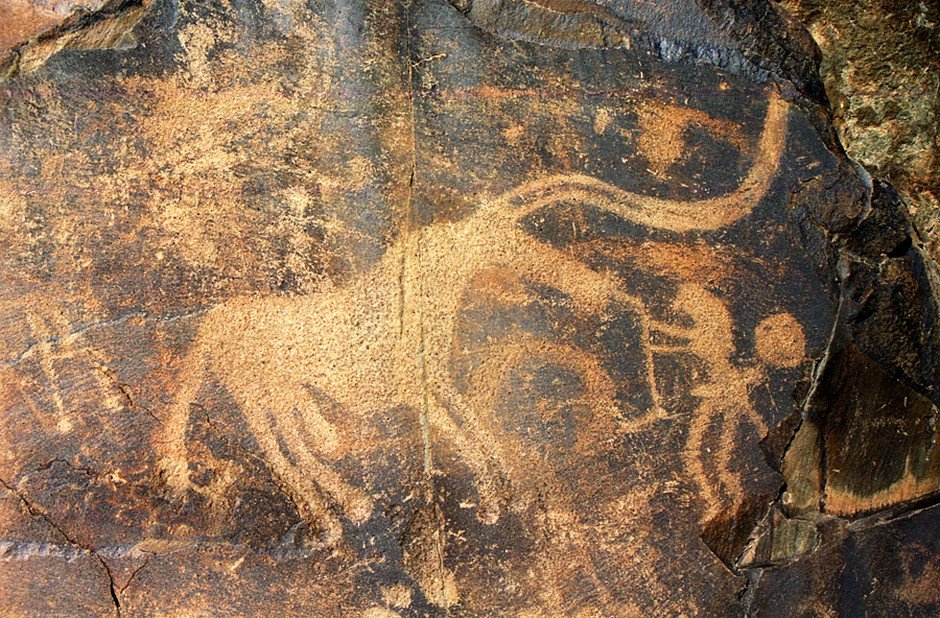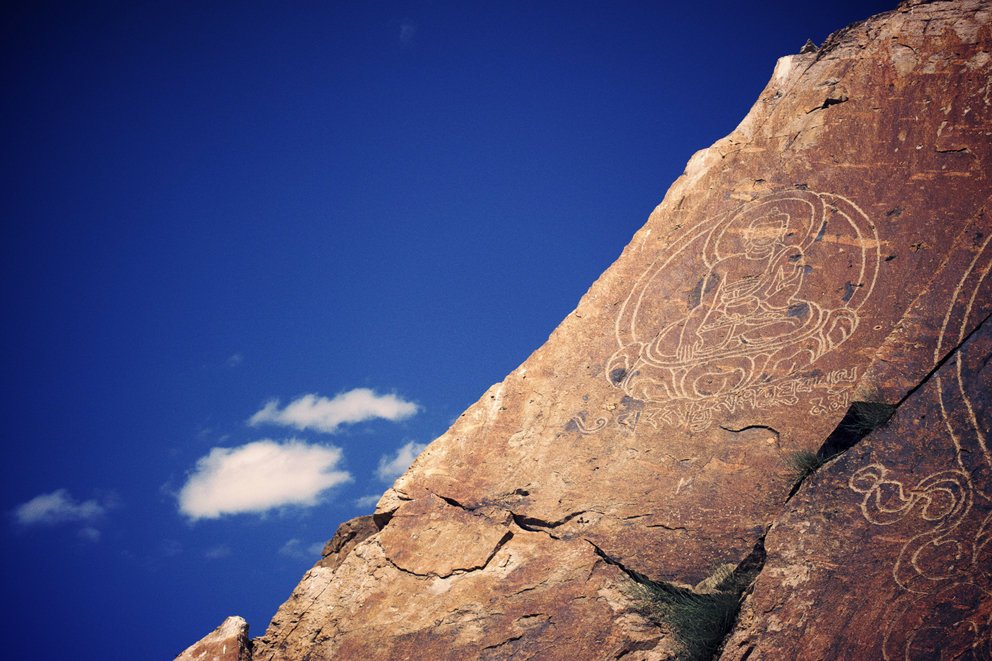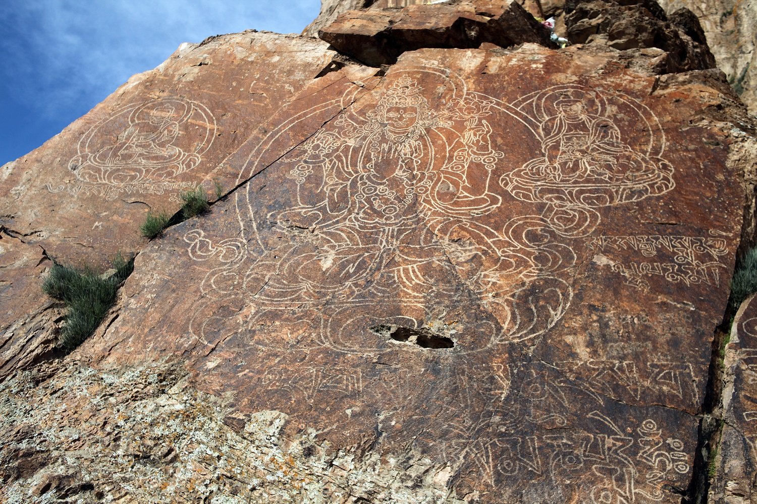 ![Петроглифы Тамгалы-тас в Казахстане]()