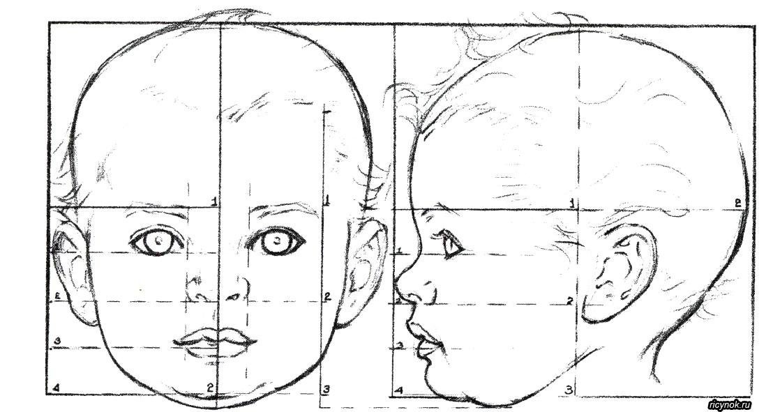 Схема рисования головы