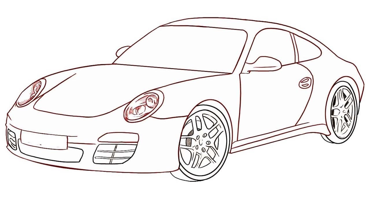 ![Порше 911 нарисованный сбоку]()