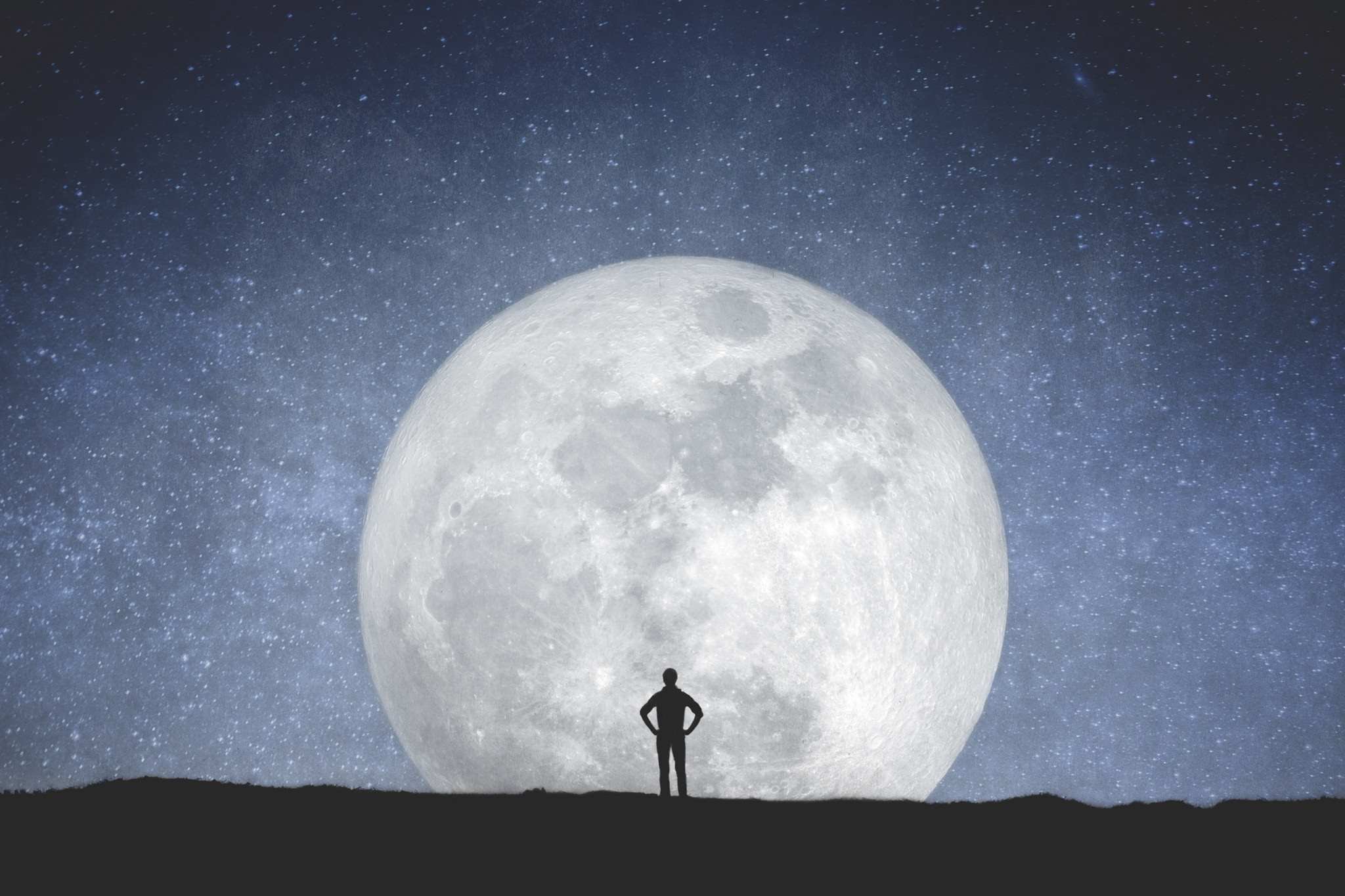 ![Силуэт на фоне Луны]()