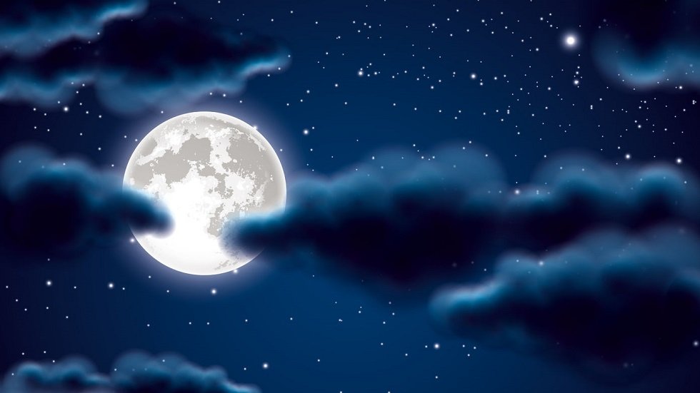![Звездное небо с полной луной]()