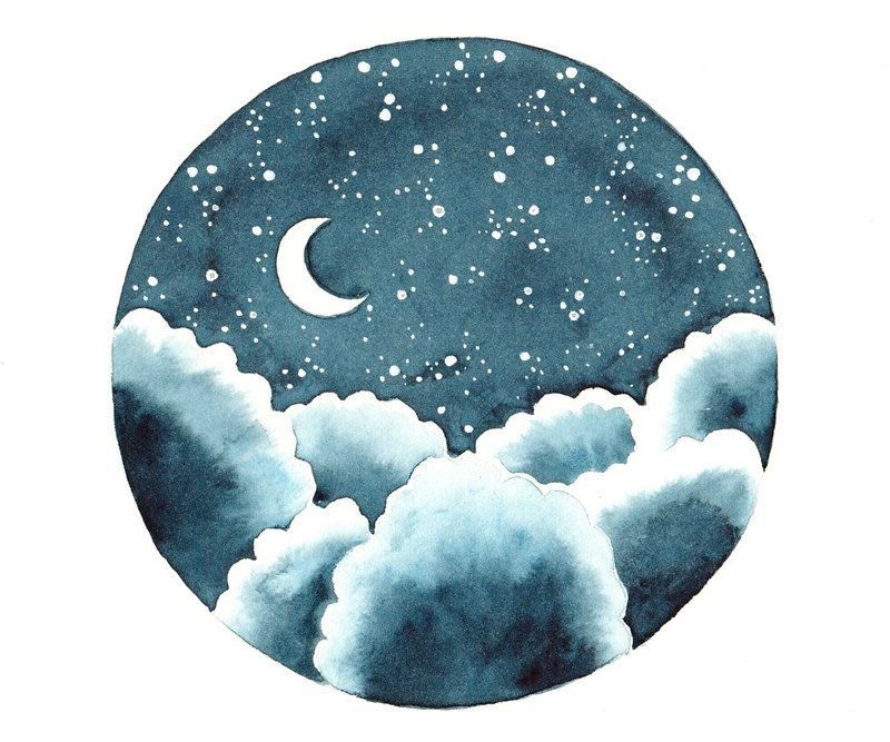 ![Ночное небо с луной акварелью]()