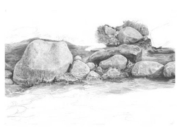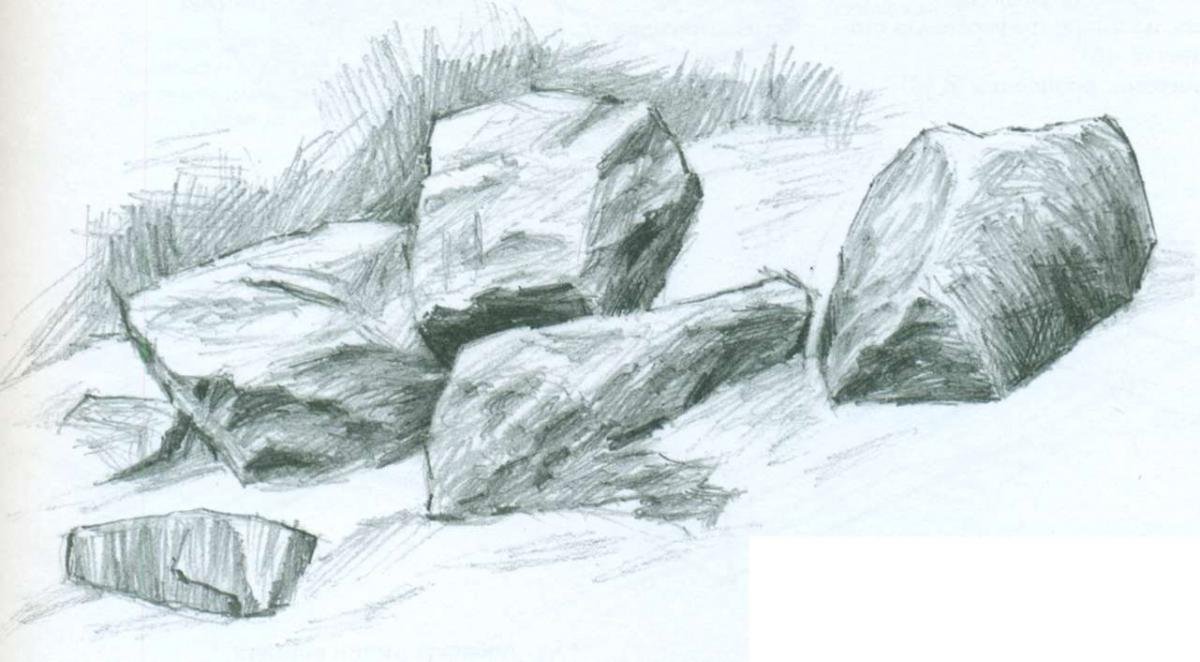 ![Зарисовки камней карандашом]()