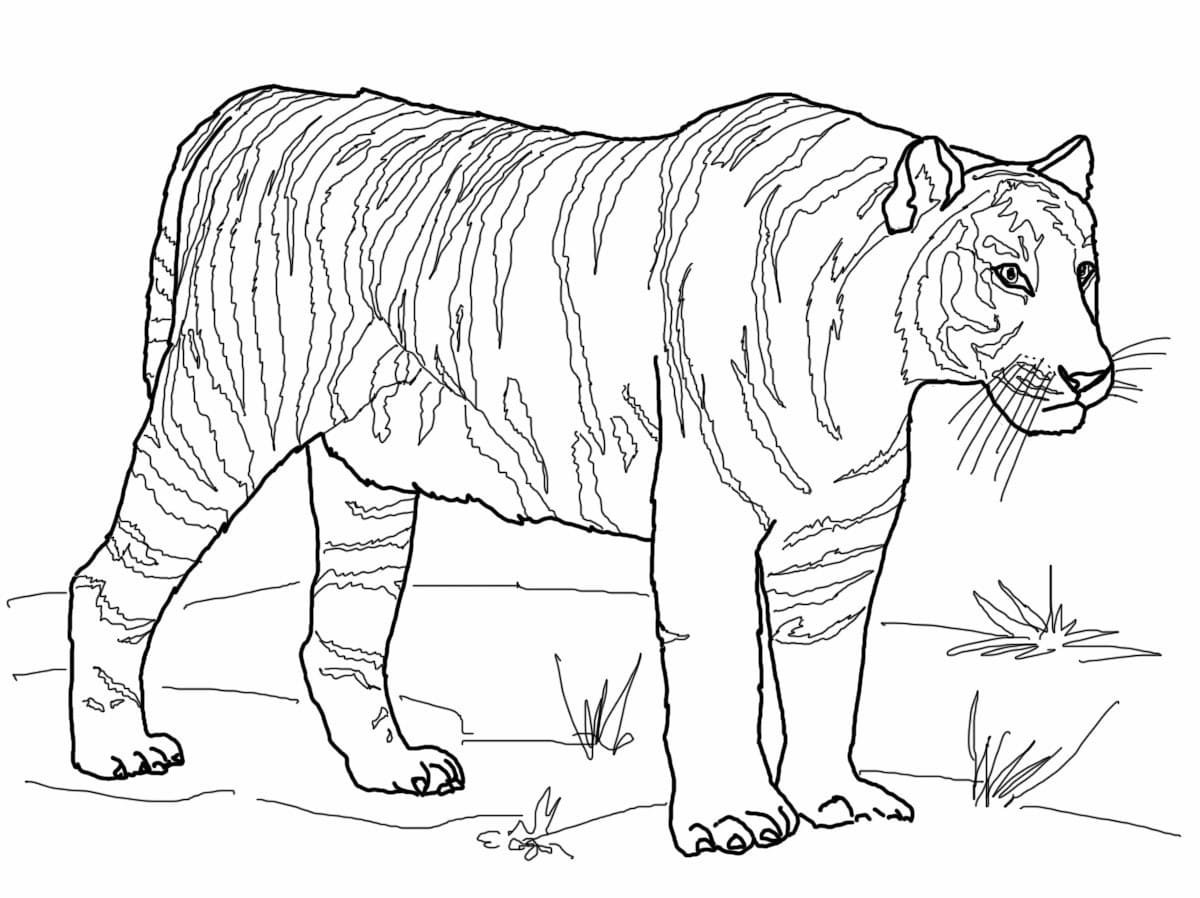 Тигр сбоку рисунок