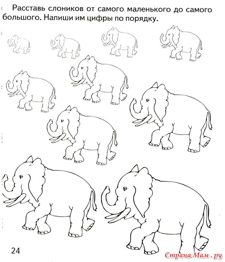 Задания для детей слоники большие и маленькие