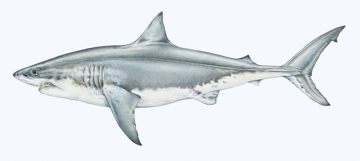 ![Белая акула вид сбоку]()