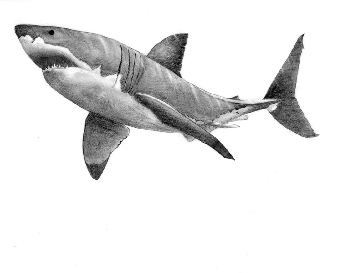 ![Эскиз большой белой акулы]()