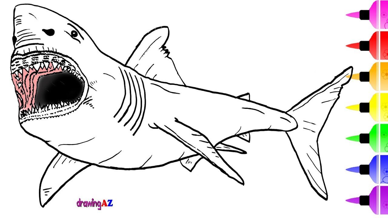 ![Разукрашки акула МЕГАЛОДОН]()