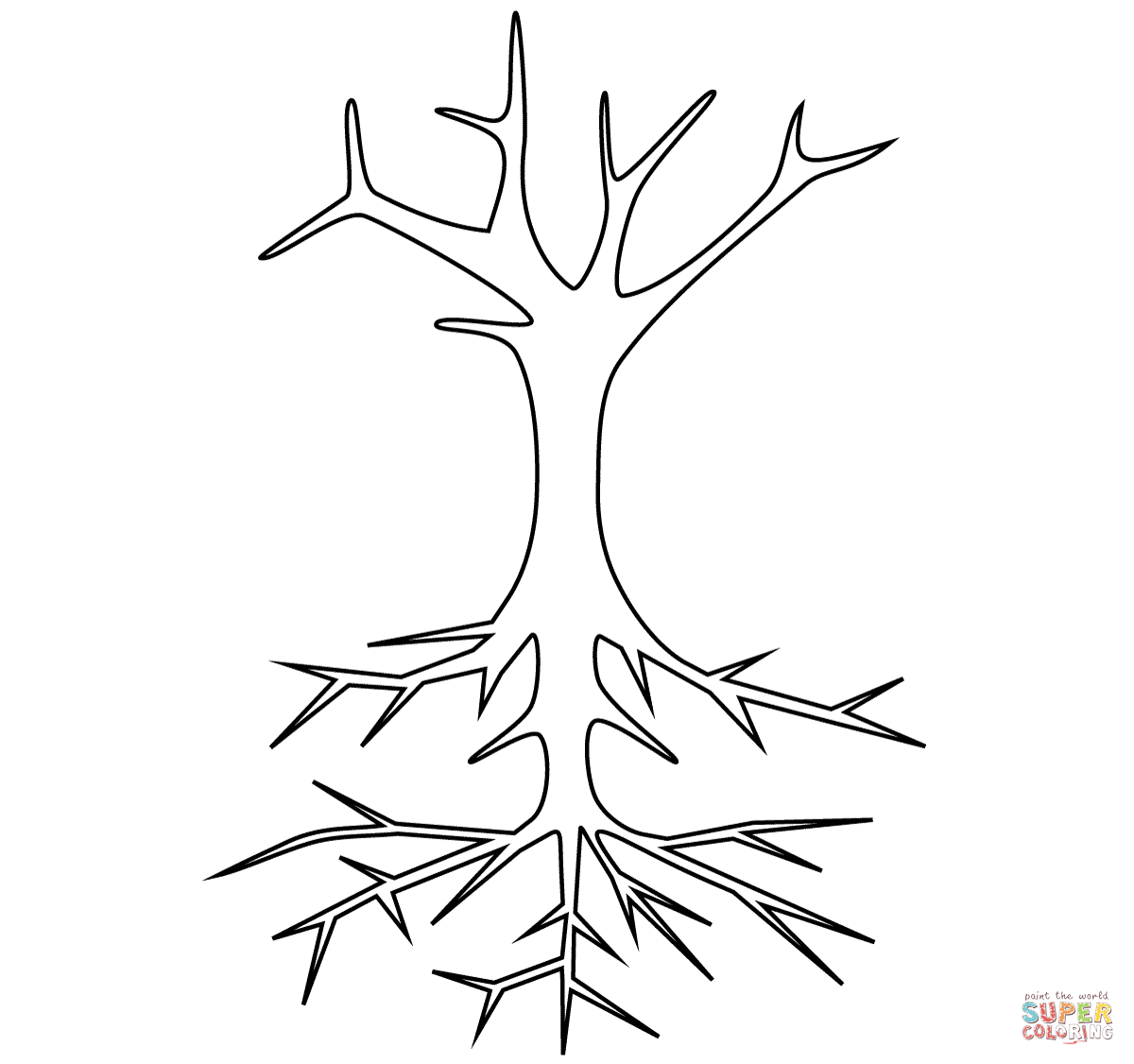 Ветвистое дерево с корнями