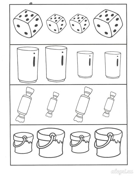 ![Предметы разной величины для дошкольников]()