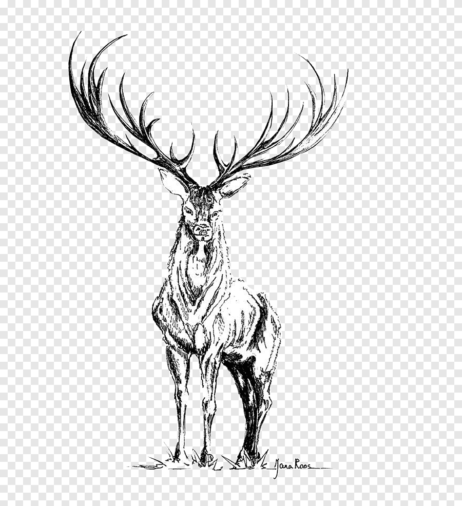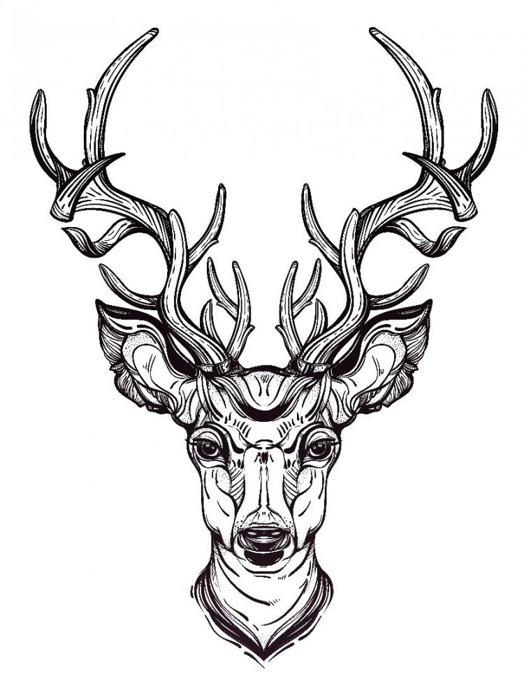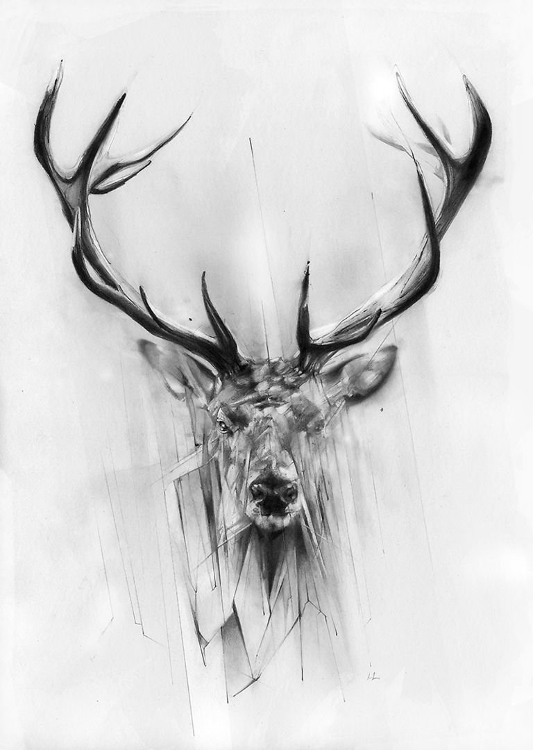 ![Олень с большими рогами рисунок (37 фото)]()