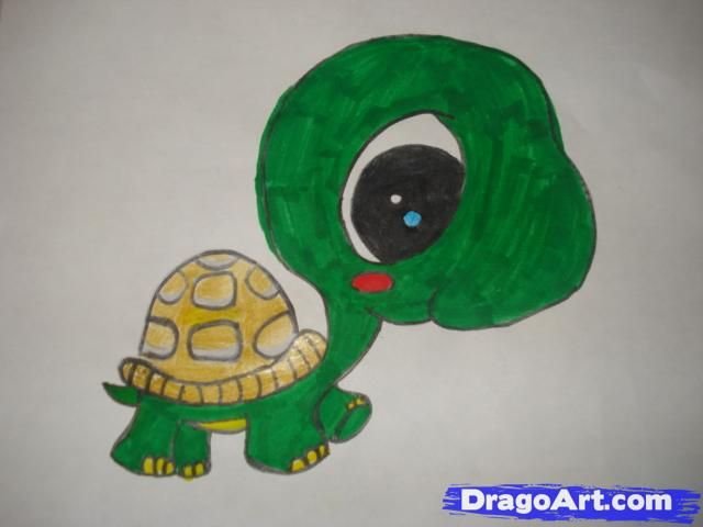 ![Нарисовать черепаху с большими глазами]()