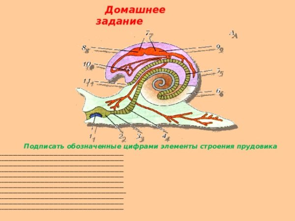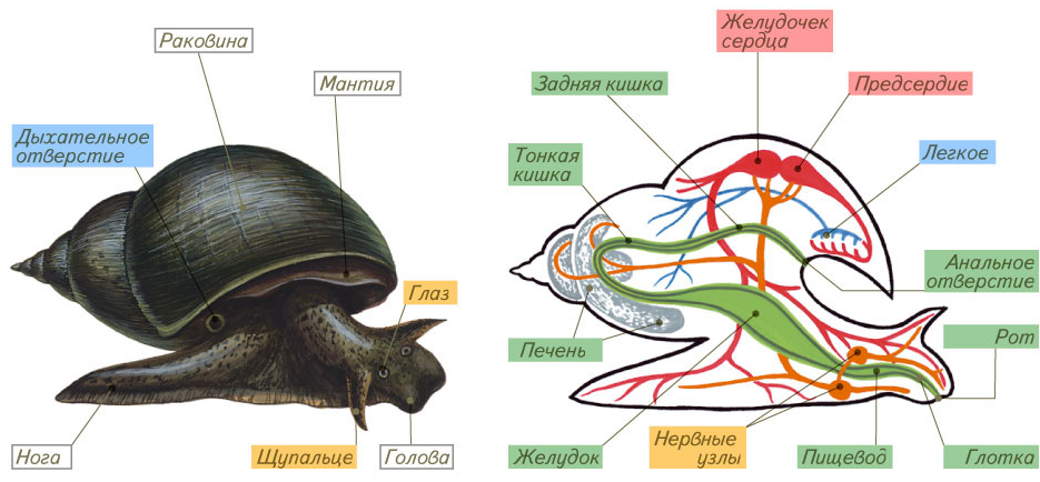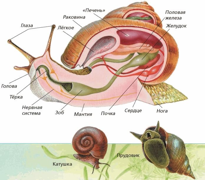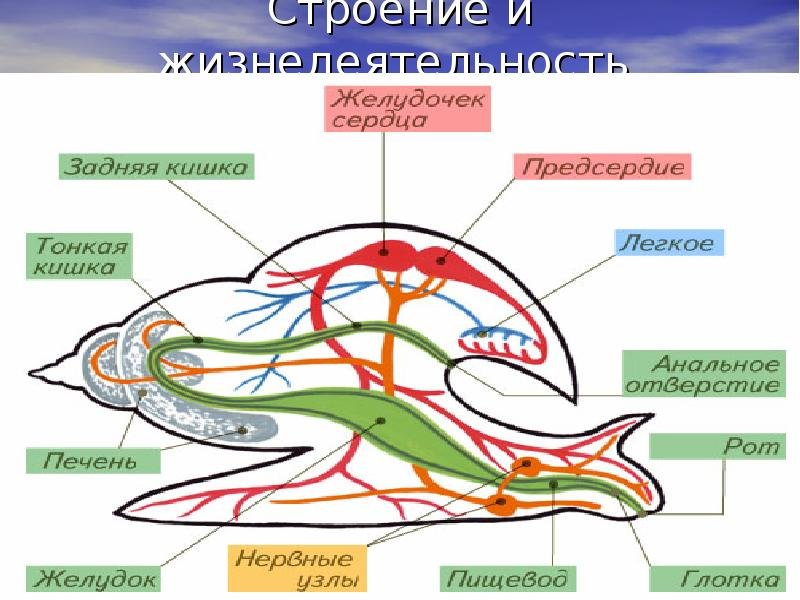 Внутреннее строение брюхоногого моллюска схема