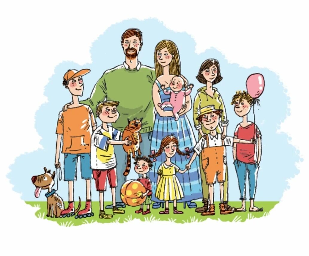 Большая семья рисунок для детей - это яркое и увлекательное развивающее занятие, которое поможет детям познакомиться с понятием семьи и ее членами. Этот рисунок представляет собой веселую картину, на которой изображены мама, папа, бабушка и дедушка, а также братья, сестры и домашние животные. Дети смогут научиться распознавать различные члены семьи, развивать свою фантазию и творческие навыки, а также узнать, что в семье всегда есть люди, которые любят и поддерживают друг друга. Рисование большой семьи будет интересным и полезным занятием для малышей, которое способствует развитию их эмоционального интеллекта и социальных навыков.
