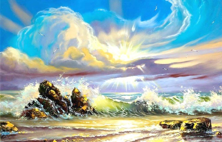 Живопись мастихином море Восход горы