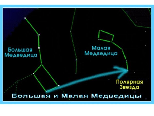 ![Созвездие большой и малой медведицы и Полярная звезда]()