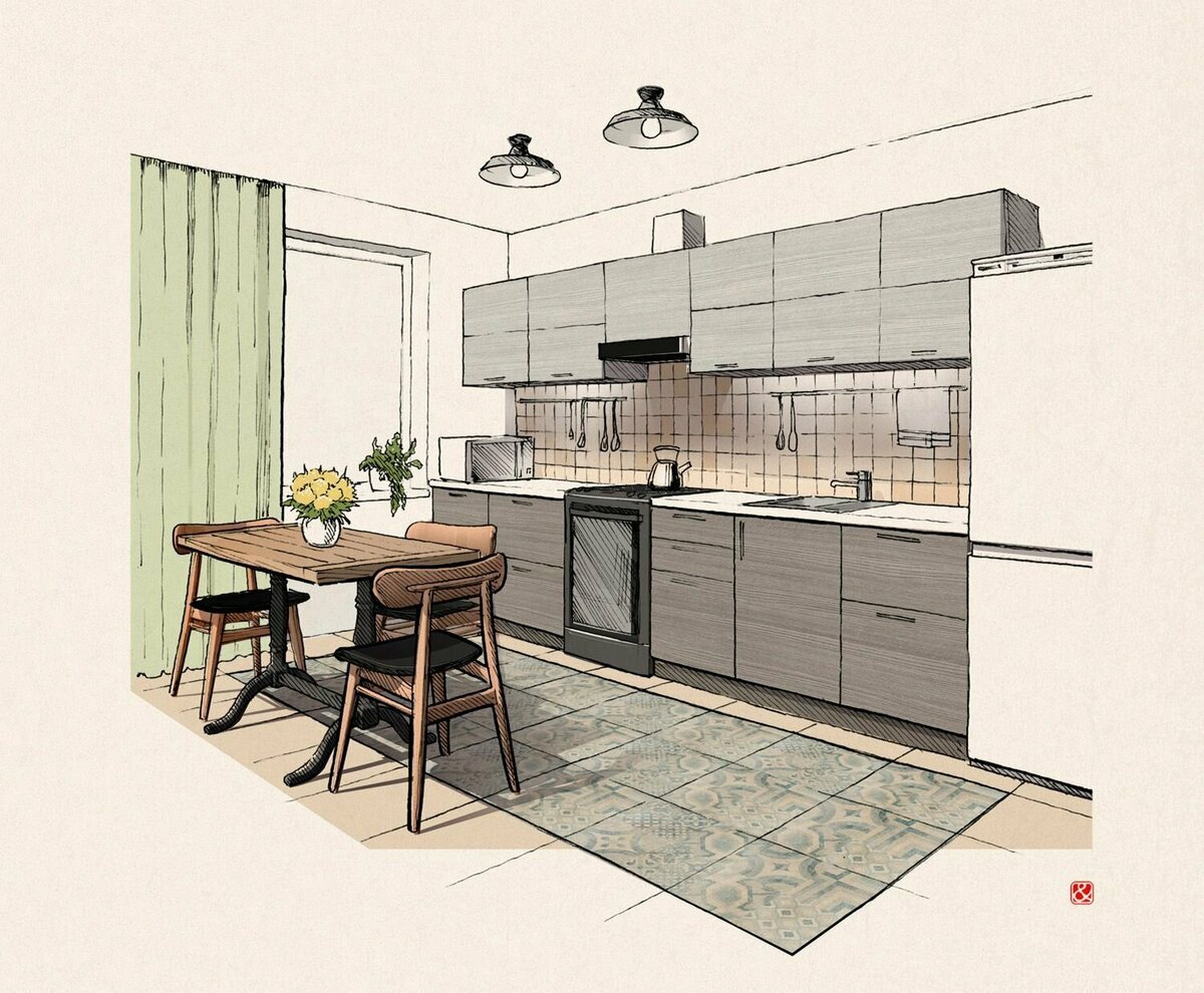 Большая кухня с рисунком - идеальное решение для тех, кто хочет превратить свою кухню в настоящий произведение искусства. Рисунок на фартуке или стенах создает особую атмосферу, придавая интерьеру уникальность и оригинальность. Вы можете выбрать любой рисунок, от классических мотивов до современных и абстрактных композиций, чтобы подчеркнуть свой стиль и вкус. Большая кухня позволяет полноценно разместить такой рисунок, создавая эффектное впечатление и делая пространство более живописным и ярким.