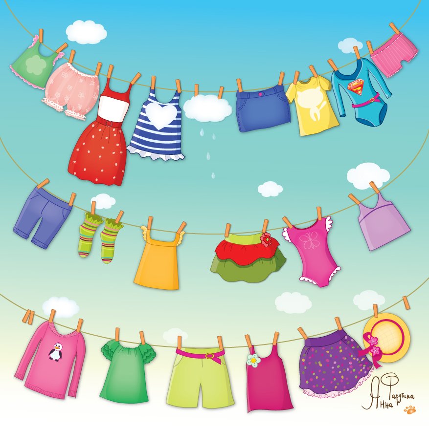 ![Одежда на веревке рисунок]()