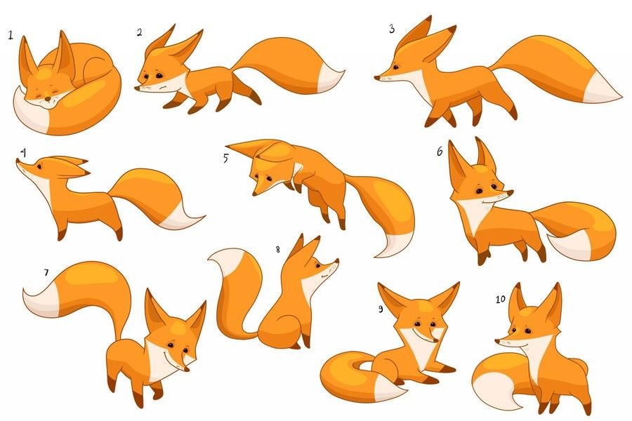 ![Лис в разных позах]()