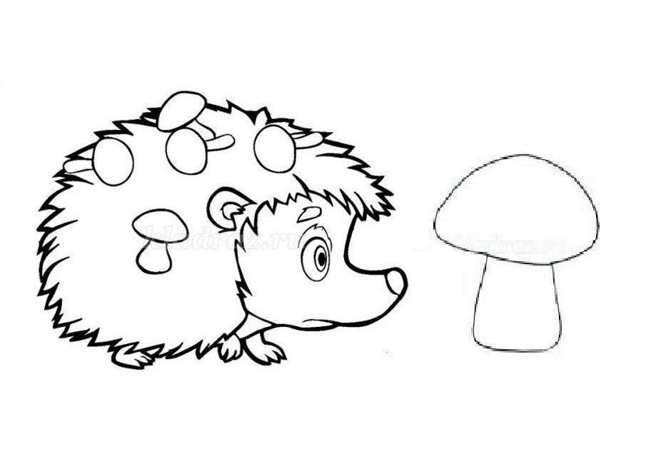 ![Ежик с грибами раскраска]()
