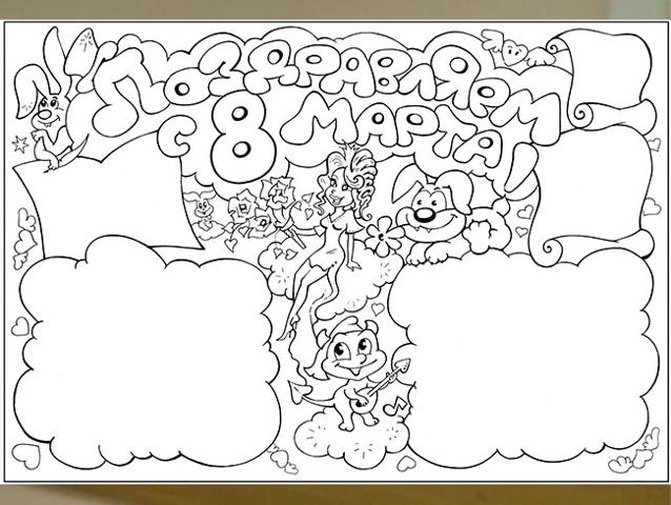 Плакат на 8 марта раскраска