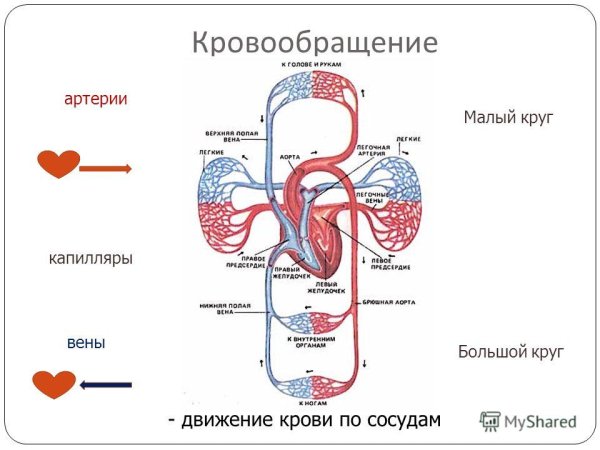 Рисунок сосуды большого и малого круга кровообращения представляет собой наглядное графическое изображение анатомии и функционирования сосудистой системы человека. Большой круг кровообращения отображает путь крови от левого желудочка сердца через аорту и ее ветви, которые доставляют кислород и питательные вещества в органы и ткани организма, а также забирают отработанные продукты обмена веществ и углекислый газ. Малый круг кровообращения показывает обратный путь крови от правого желудочка сердца через легочную артерию, легочные капилляры и легочные вены, где кровь оксигенируется, то есть насыщается кислородом, и возвращается в левое предсердие сердца. Этот рисунок является важным инструментом для понимания работы сердечно-сосудистой системы и используется в медицинских учебных материалах, научных исследованиях и визуальных презентациях, помогая демонстрировать процессы, происходящие внутри организма человека.
