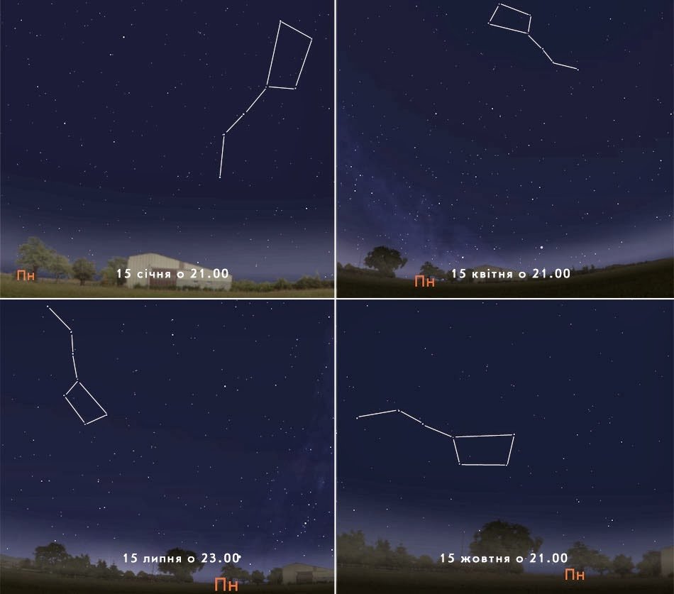 ![Расположение созвездия большая Медведица по временам года]()