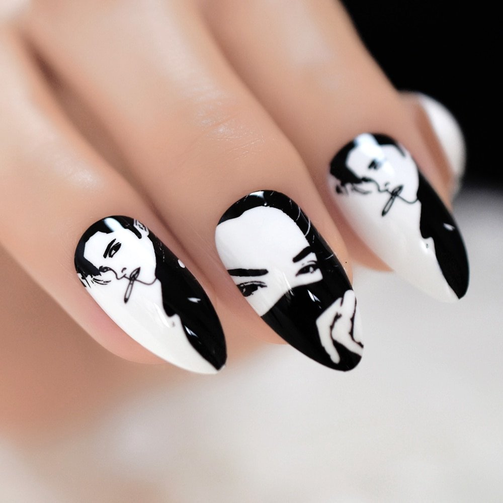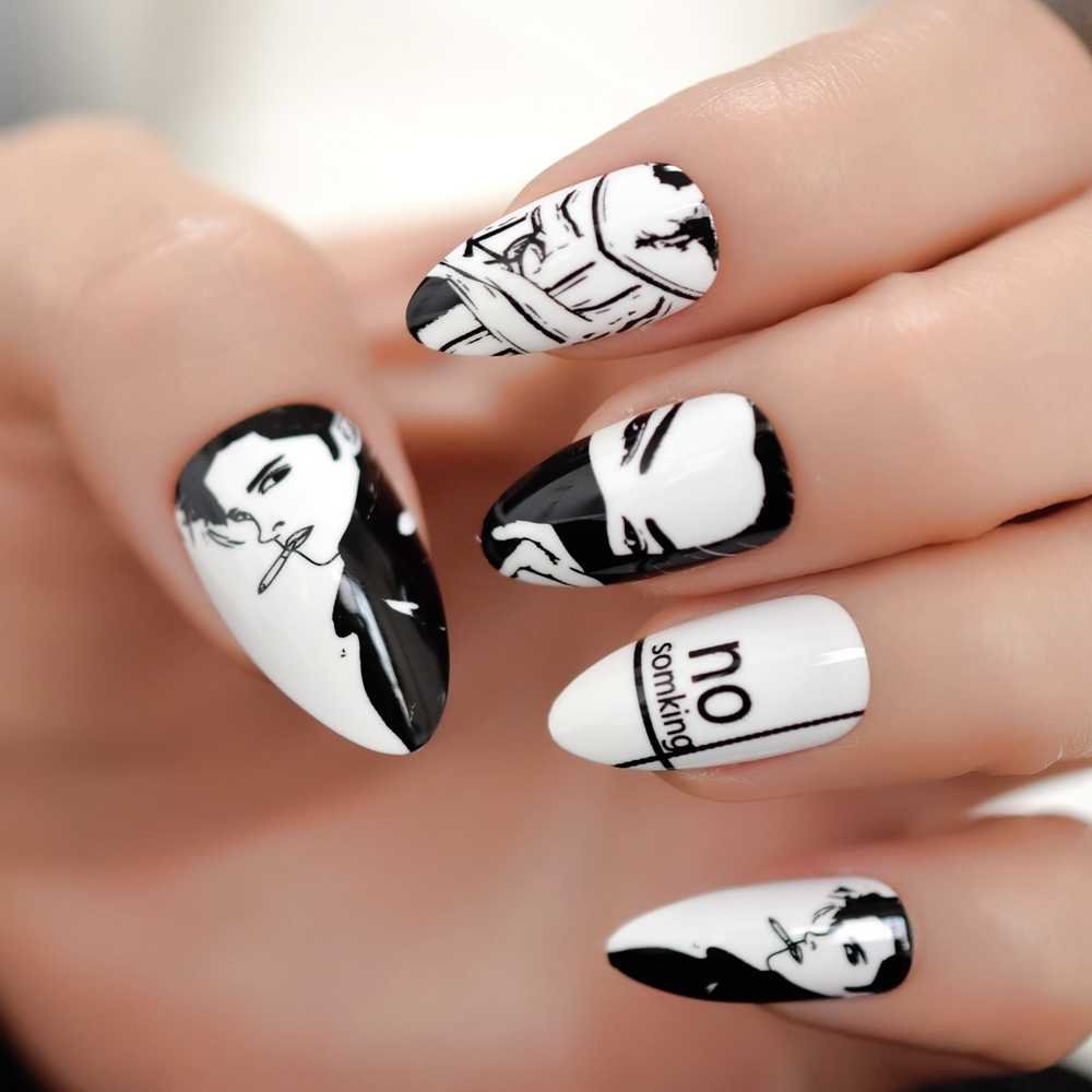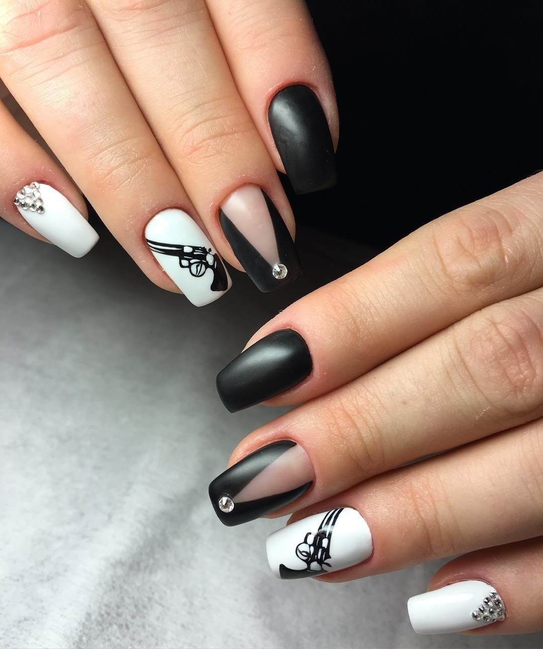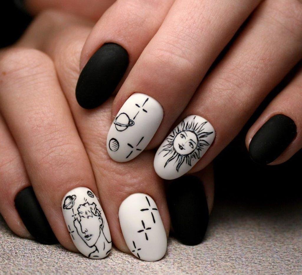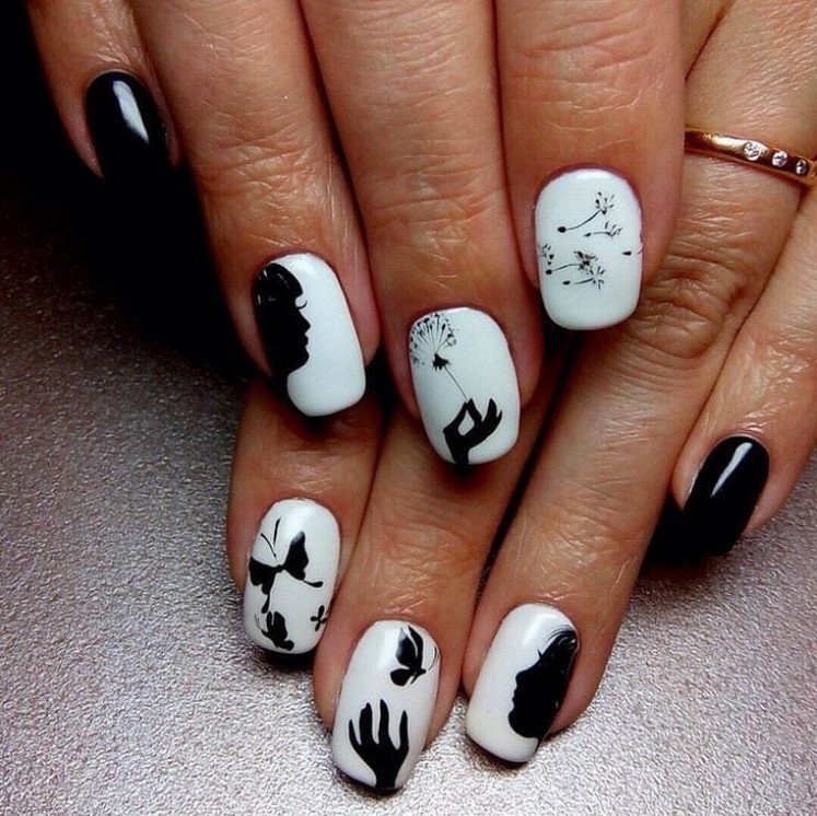 Черно белый маникюр с рисунком