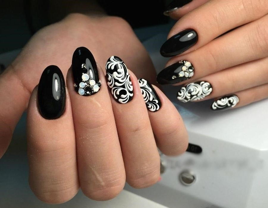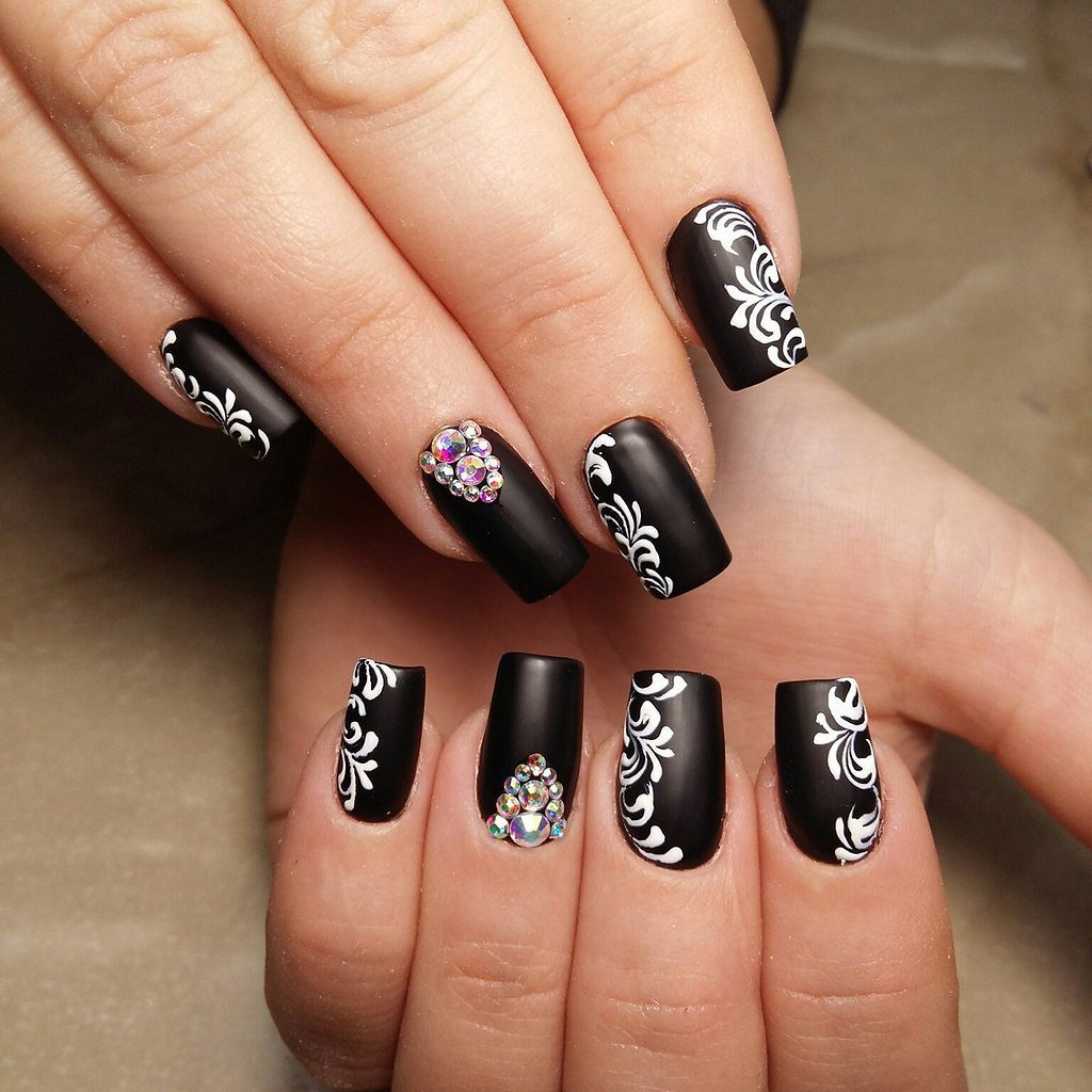 Черный маникюр с рисунком