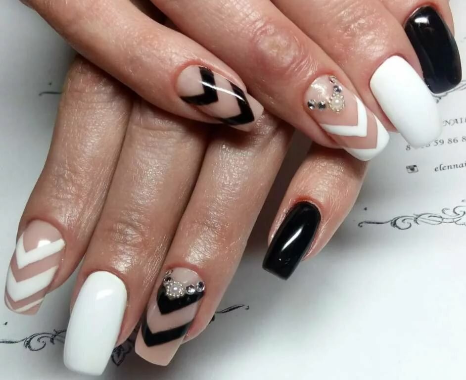 ![Ногти черно белые]()