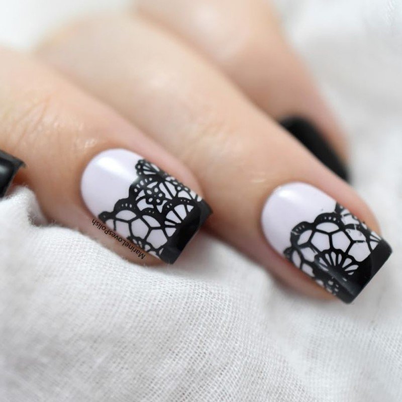 ![Маникюр с черным кружевом]()