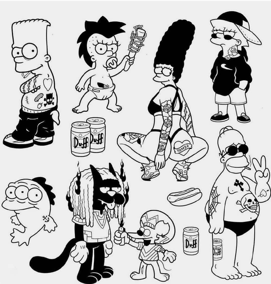 ![Симпсоны тату эскизы]()
